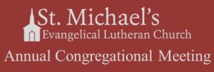 The Annual Congregational Meeting of St. Michael’s Lutheran Church will be held on November 2, 2025 following the Sunday morning worship service. All church members are requested to attend. We will receive the annual reports, approve and elect new Church Council members and approve the 2026 budget.